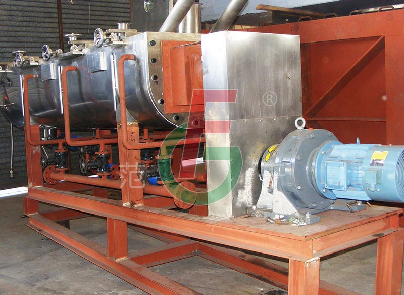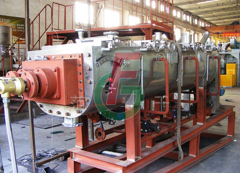 該機適用于處理各種膏糊狀,粒狀粉狀等熱穩定性好的物料,在特殊條件下也可干燥熱敏性物料及在干燥過程中回收溶劑。加熱介質可采用蒸汽,熱水,熱油等。典型干燥物料有:碳黑,碳酸鈣,石膏,粘土,尼龍和聚脂片,聚乙烯,聚丙烯等。