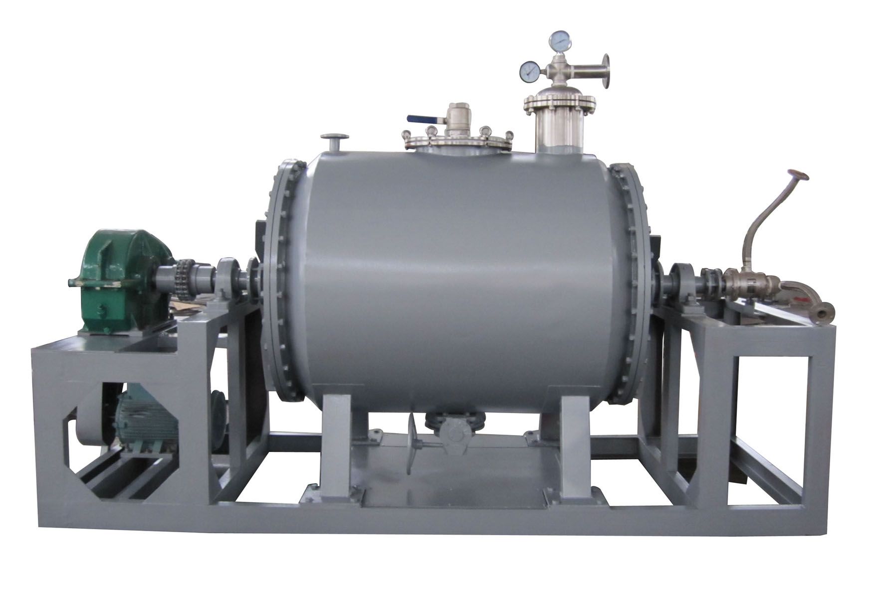 在雙錐真空干燥機材料由原則或真空的應用中干燥。水沸騰在較低的溫度時,壓力是通過創建真空降低。所以水的蒸發發生得更快。真空干燥設備的結構是由與鑄鐵重夾套容器其與立在夾套中的蒸汽壓力支架高真空壓力。它已封閉的空間,并分成20個空洞擱板部,它們的護套的一部分。這些貨架由于較大的表面積由貨架和金屬盤提供約45至50米平方被放置在貨架上,用于保持材料提供的熱傳導。烤箱門被鎖定緊緊得到氣密密封,并通過將冷凝器連接到一個真空泵。