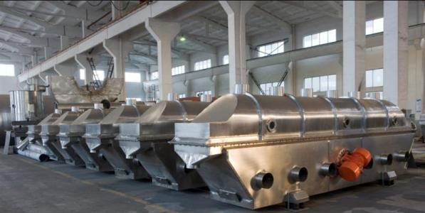 進(jìn)入流化床內(nèi)的濕物料與熱空氣在布風(fēng)板上方接觸,物料顆粒懸浮于氣流之中,形成流化狀態(tài)。呈流化狀態(tài)的物料顆粒與熱空氣均勻、充分地混合,進(jìn)行十分強(qiáng)烈的傳熱和傳質(zhì),脫除水分,達(dá)到干燥。合格的產(chǎn)品由流化床的出料口排出,含塵氣體經(jīng)除塵裝置凈化后由引風(fēng)機(jī)排入大氣。