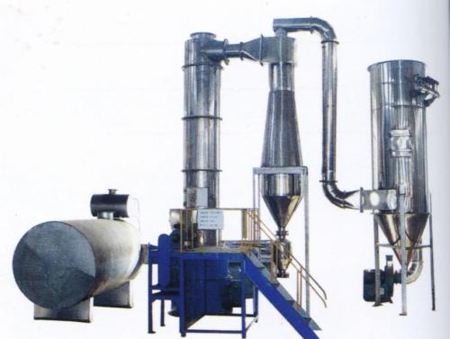 旋轉(zhuǎn)閃蒸干燥機是二十世紀八十年代在國外新推出的一種將干燥技術和流態(tài)化技術綜合為一體的新型干燥設備,它克服了噴霧干燥設備高,能源消耗大和流化床干燥不均勻的缺點,集兩者之所長。成為具有高效、節(jié)能、快速等特點的理想干燥設備。它特別適合于高黏度膏狀物、濾餅等物料的直接干燥,并可一次獲得顆粒微細的粉體,彌補了耙式干燥效率低、產(chǎn)量小的不足,改變了噴霧干燥先稀釋再進行噴霧處理的復雜過程。由于熱風與物料接觸時間短,可以對觸變性、熱敏性物料及生物菌體進行干燥,并具有防止焦化變色的作用。