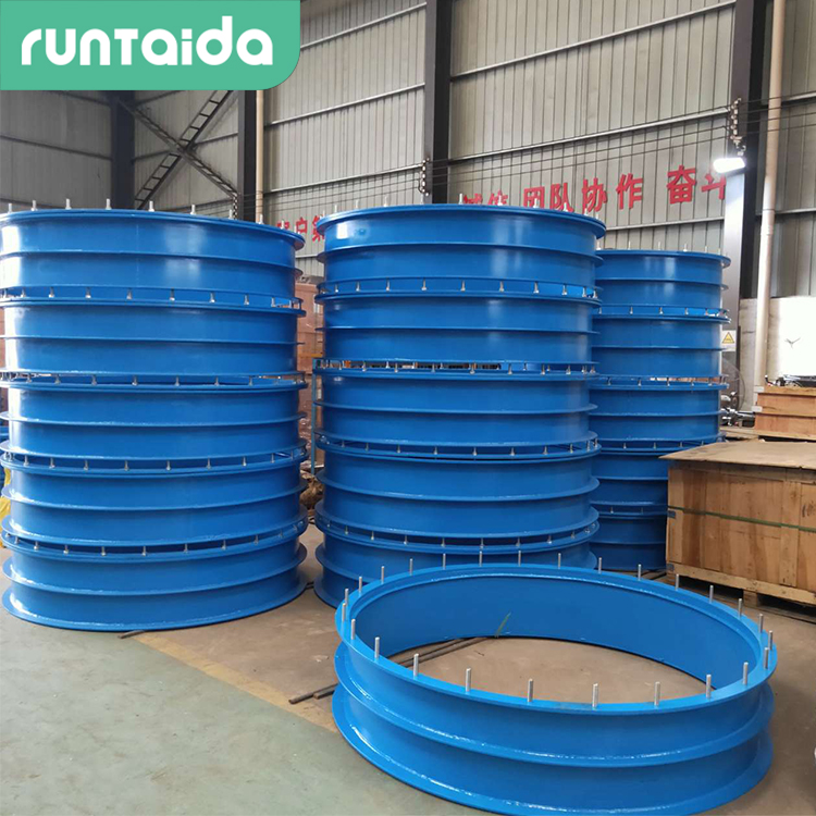 柔性防水套管的結(jié)構(gòu)特點:由翼環(huán)和套筒組成,相比剛性防水套管多了壓盤和密封圈,從而起到密封防水的作用。套管部件焊接材料,用A3材料制作,T42焊接。套管部分加工完成后,在其外壁均刷底漆一遍(底漆包括樟丹或冷底子油),外層防腐由設(shè)計決定。